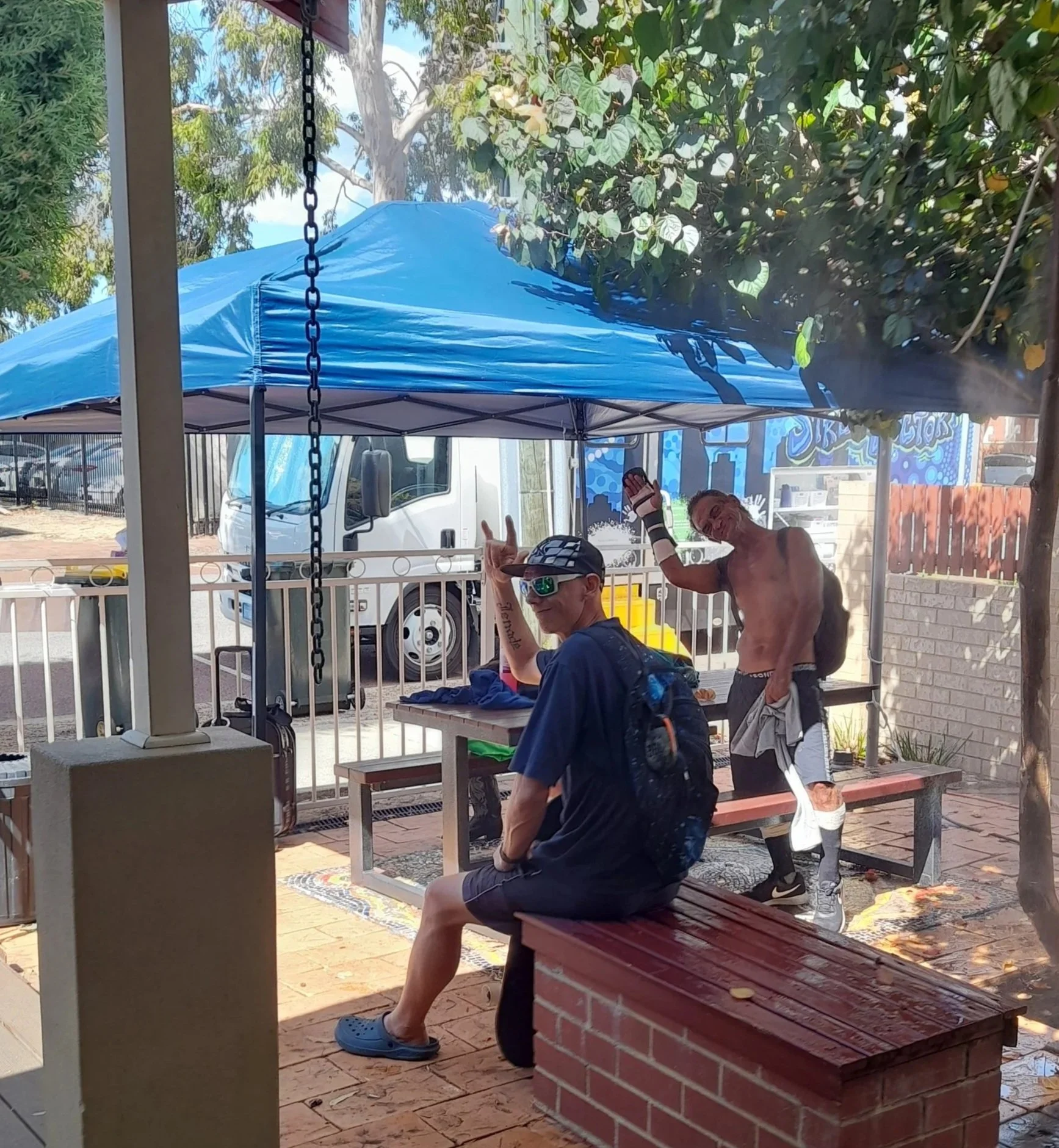 “The main thing that we needed was just somewhere to go. Because when you’re stuck outside 24/7 every day, you can’t hide from the sun, you can’t hide from the people, you can’t get away from the cold. You’re just out there, mate. It’s harsh, it really is.”